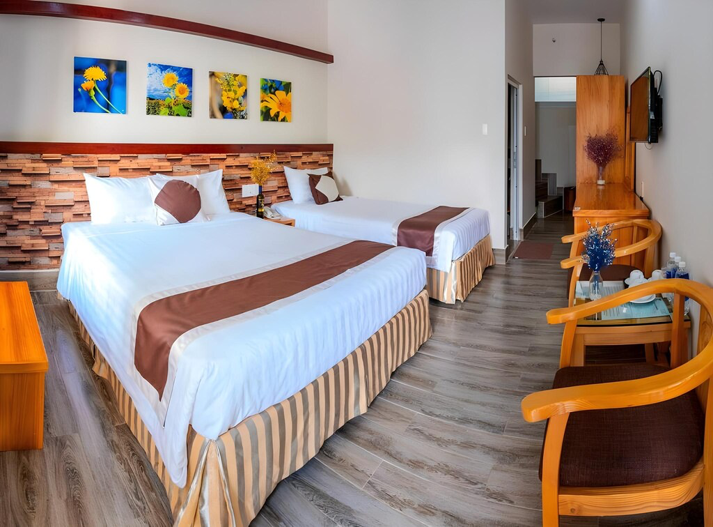Không gian khách sạn sạch sẽ, thoáng mát với phong cách thiết kế ấm cúng. Phòng nghỉ được trang bị đầy đủ tiện nghi cơ bản, phù hợp cho gia đình hoặc nhóm bạn muốn tìm một khách sạn trung tâm với mức giá hợp lý.